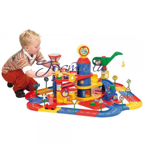 Цей барвистий паркінг від бренду POLESIE, допоможе малюкові доповнити своє іграшкове місто новою будовою, яка нікого не залишить байдужою. Тепер всі твої машинки будуть 'відремонтовані', 'заправлені' і готові відпочивати ввечері після активної гри. Гараж складається з 4 рівнів і має спеціальний ліфт, який підніме машинки на потрібний тобі рівень. Також в наборі ти знайдеш 2 машинки, автосервіс, заправку, підйомний кран, естакаду і спуск. Деякі деталі можуть рухатись після використання спеціального важеля управління. Розмір в зібраному вигляді: 50 х 112 х 112 см.