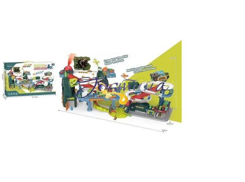 Dinosaur Urban Track” - це не звичайна парковка, це цілий світ, створений поза межами людської цивілізації. Круті підйоми та звивисті спуски, електричні підіймачі, неймовірна кількість тематичних елементів декорацій, які створюють атмосферу азартних перегонів прямо посеред дивовижного дино-парку. Особливості: - 2 автоматичні підіймачі; - підсвічування; - звукові ефекти; - 2 режими роботи: зі звуком та без; - оригінальний дизайн у форматі дино-парку; - всі ігрові елементи виконані з якісного зносостійкого пластику, здатного витримувати активну експлуатацію; - у комплекті представлені яскраві міні-машинки; - набір доповнений наліпками, якими можна прикрасити конструкцію; - підіймачі працюють від 3-х батарейок типу “АА” (не додаються).