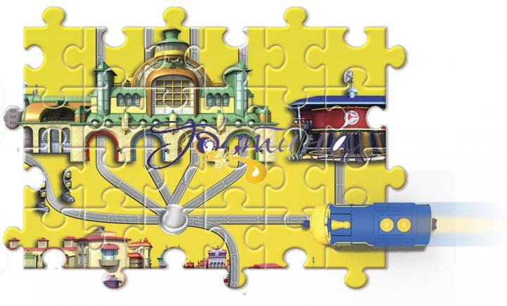 У комплекті 6 деталей пазла. Збери колекцію паровозиків та склади залізничну карту!