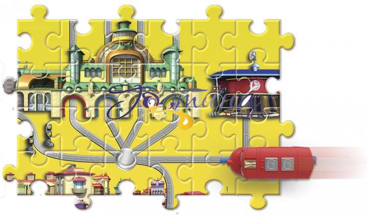 У комплекті 6 деталей пазла. Збери колекцію паровозиків та склади залізничну карту!