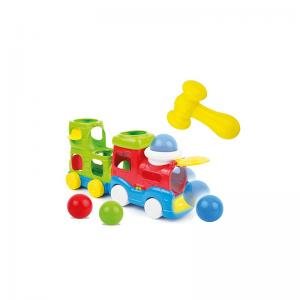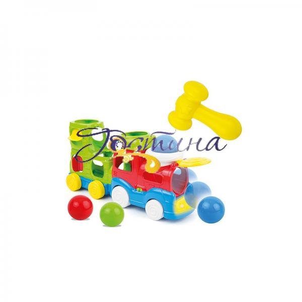 Паровоик- стукалка, розмір 29см, стукалка з молоточкрм і кульками, каталка. Іграшка з музикою, звуком, 2 режими гри, працює від батарейок.