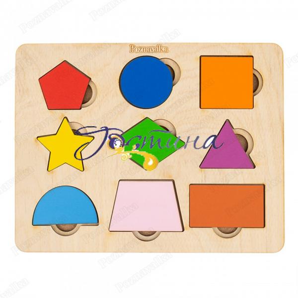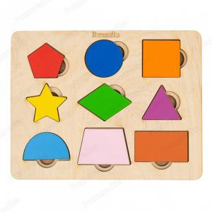 Познайомте дитину з різними формами геометричних фігурок з допомогою пазла-вкладиша. Пазл «Двошарові фігури» вміщує по 9 фігур: коло, прямокутник, півколо, п'ятикутник, зірка, квадрат, ромб, трапеція, трикутник. (Маленькі і великі) все 18 фігур. Підкладки-підказки і чітко вирізані форми приведуть дитину до правильного вибору місця для кожної фігурки. Так само за допомогою цієї іграшки дитина навчиться розрізняти розмір великий і маленький. Чи зможе легко Вивчити 9 кольорів.
