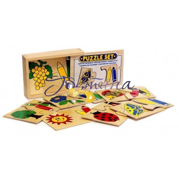 Кількість деталей: 16 шт. (8 х 2). Розмір картинки, см: 17 х 12 х 0,6.   Пазл 'Кольорові олівці' включає в себе 8 окремих картинок із зображенням того чи іншого предмета і кольорових олівців квітів, використаних для картинки. Кожна картинка складається з 2-х частин, складених за принципом пазла.   Ігрова завдання - поєднати картинку з предметом і кольоровими олівцями, підібравши потрібні кольори.   За допомогою пазла відбувається: розвиток і вдосконалення рухів рук, дрібної моторики;розвиток уваги, тренування спостережливості;навчання квітам і рахунку;сприяє порівняння, співставлення;розвиток мови, збагачення словникового запасу, вдосконалення звуковимови, формування граматично правильного зв'язного мовлення.Гра підходить і для групового заняття.