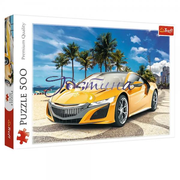Пазли на 500 елементів із зображенням розкішного жовтого автомобіля на фоні райського пляжу. Після укладання пазлів ми отримаємо картинку розміром 48х34 см. Високу якість, насиченість кольорів та безпеку при укладанні пазлів забезпечує спеціальний каландрований картон, який відбиває світло та покритий екологічними фарбами.