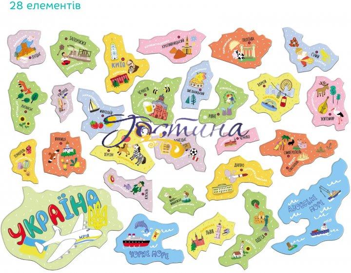 Зустрічайте новий пазл Dodo, натхненний нашою рідною країною. Кожен елемент цього пазлу - область України та найбільш відомі місця, та цікавинки нашої найкращої. Але це не просто пазл. Це магнітний пазл, тож малята можуть його збирати та просто так, і прикріпляти до металевих поверхонь.