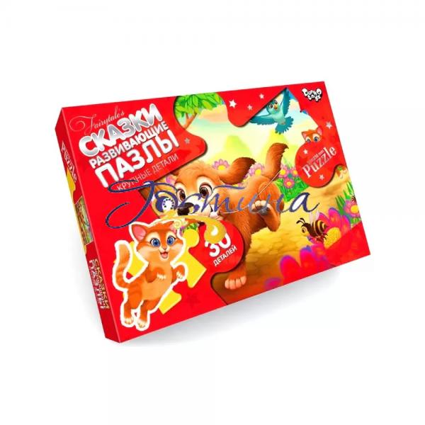 Пазл Maxi Казки "Весела гра" Danko Toys набір для найменших. Включає 30 великих деталей, у тому числі дитині пропонується зібрати картинку. Після завершення роботи отримане зображення можна покрити лаком і повісити на стіну в якості інтер'єрного прикраси. Збираючи пазли від Данко Тойс, дитина розвиває образне та логічне мислення, довільну увагу, вчиться розрізняти елементи за формою, кольором та розміром, формує точне розуміння зв'язку частини та цілого, а також покращує навичку дрібної моторики.