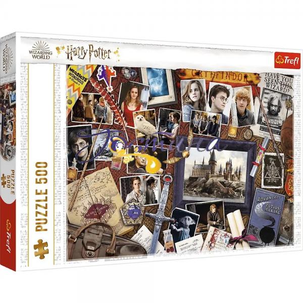Ліцензовані пазли на 500 елементів, створені за мотивами культової серії фільмів про Гаррі Поттера із зображенням у вигляді колажу Гаррі Поттера, його друзів Рона і Герміону та магічних предметів, які вони використовували під час навчання у школі чарів і чаклунства Гоґвортс.