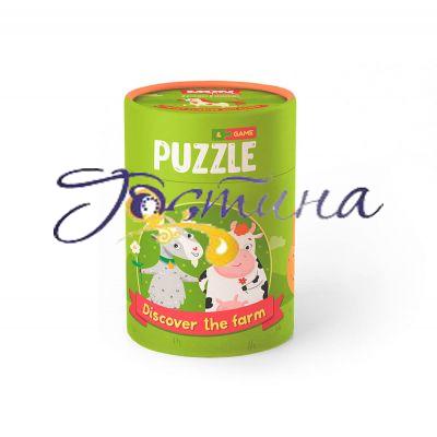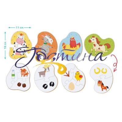 «2-3 елементи. Хто живе на фермі» — це двосторонній пазл-гра. З одного боку пазла, зображені тварини, а з іншого – елементи, які їх стосуються.