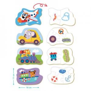 Пазл та гра від нового бренду Mon puzzle «2-3 елемента. Мандруємо!»— це двосторонній пазл-гра. З одного боку пазла зображені корабель, поїзд, машина, літак, а з іншого — елементи, які мають відношення до даних видів транспорту.  Рекомендований для дітей від 18 місяців.  Деталі пазла великі, картон щільний, елементи із закругленими кутами для безпеки малюка.  Пазл-гра тренує:   - Просторове мислення  - Дрібну моторику  - Пам'ять  - Логіку  - Творчі навички  - Посидючість  Вік: 18м+? Комплектація:  4 двосторонніх пазли: 2 пазли x2 елементи; 2 пазли x3 елементи; 10 карток із завдяннями