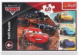 Пазли на 60 елементів з зображенням у вигляді колажу Блискавки Макквін і його друзів, улюблених персонажів популярного анімаційного фільму Уолта Діснея "Тачки-3". У складеному вигляді розмір картинки складає 22х33 див. Висока якість, насиченість кольорів і безпеку при збиранні пазлів забезпечує спеціальний каландрировані картон, який відбиває світло і покритий екологічними фарбами.
