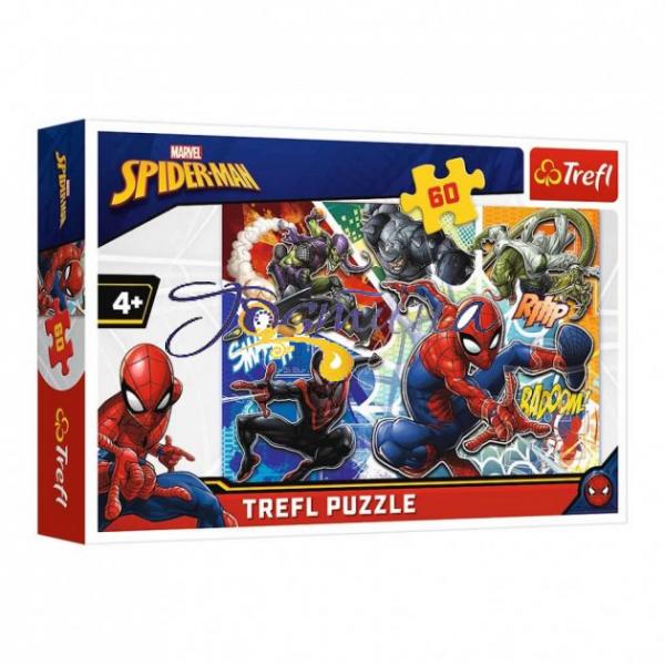 Пазли на 60 елементів із зображенням культового героя Спайдермена і його суперників. У складеному вигляді розмір картинки складає 22х33 див. Висока якість, насиченість кольорів і безпеку при збиранні пазлів забезпечує спеціальний каландрировані картон, який відбиває світло і покритий екологічними фарбами.
