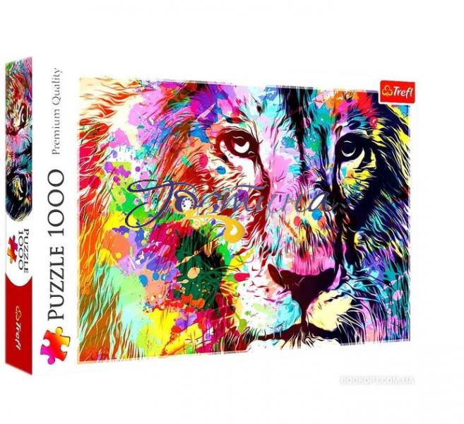 Пазли на 1000 елементів із зображенням мальовничого лева, що досить розтягнувся на м'якому покривалі. У складеному вигляді розмір картинки становить 68х48 см. Висока якість, насиченість кольорів та безпека при складанні пазлів забезпечує спеціальний каландрований картон, який відображає світло та покритий екологічними фарбами.