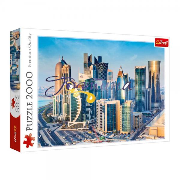 Пазли на 2000 елементів з видом на р. Доха в Катарі. Доха - місто на узбережжі Перської затоки, найбільше місто і столиця арабського емірату Катар. У складеному вигляді розмір картинки складає 96х68 див. Висока якість, насиченість кольорів і безпеку при складанні пазлів забезпечує спеціальний каландрировані картон, який відбиває світло і покритий екологічними фарбами. Упаковка: Коробка