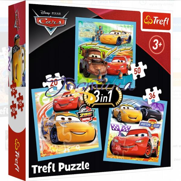 Пазли - (3в1) - 'Готуємось до перегонів' / Дісней Тачки 3/Trefl