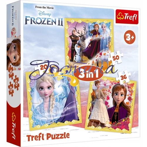Пазли - (3в1) - 'Магічна сила Анни та Ельзи' / Дісней Крижане серце 2/Trefl
