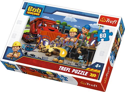 Пазли на 60 елементів із зображенням популярних будівельників - Боба та його подружки Венді, а також їхніх вірних друзів - будівельних машин. У складеному вигляді розмір картинки становить 22х33 см.
