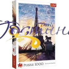 Пазли на 1000 елементів із красивим зображенням у вигляді колажу міста Париж на світанку. У складеному вигляді розмір картинки становить 68х48