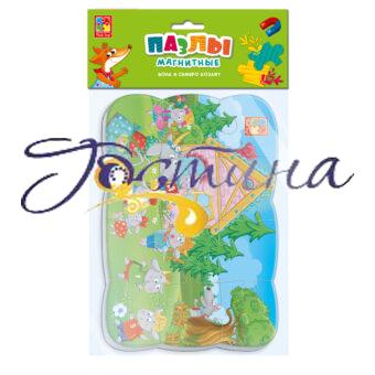 Чудова магнітна картинка із зображенням героїв казки «Семеро козенят» допоможе малюкові навчитися концентрувати увагу.