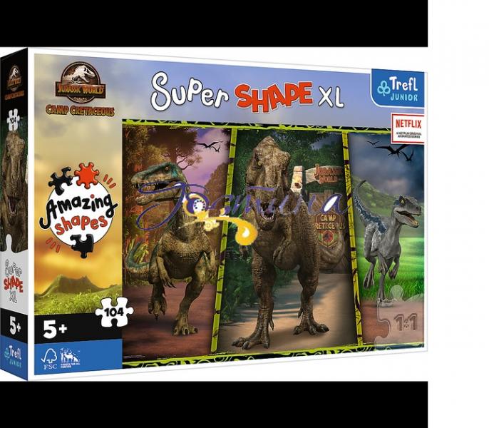 Відкрийте для своєї дитини захоплюючий світ динозаврів із пазлом "Super Shape XL" від "Trefl Junior", ліцензованим за мотивами популярної серії "Jurassic World: Camp Cretaceous" від Netflix! Цей великий пазл складається з 104 шматків і призначений для маленьких дослідників віком від 5 років, які хочуть поринути у світ пригод і величних істот.