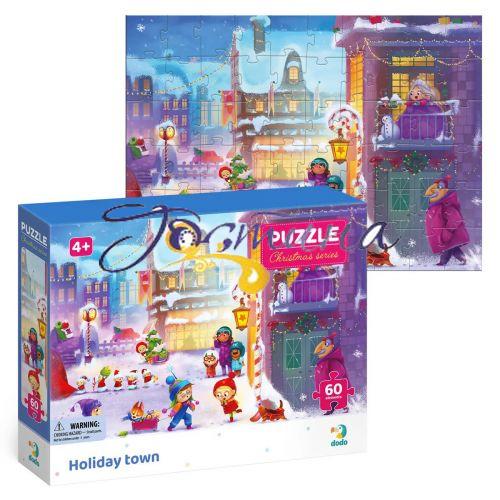 Яскраві барвисті пазли на 60 деталей. Пазли у тематиці новорічних свят "Holiday town". Розмір готової картинки: 32х23 см. Розвивають логічне мислення, дрібну моторику рук, посидючість. Для дітей віком від 5-ти років.
