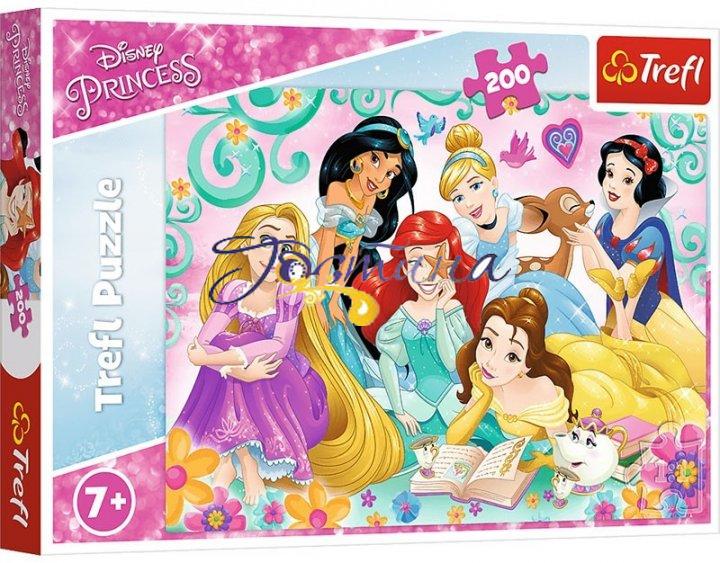 Пазли на 200 елементів із зображенням чарівних Принцес з улюблених серіалів Уолта Діснея, які весело проводять свій вільний час. У складеному вигляді розмір картинки становить 48х3