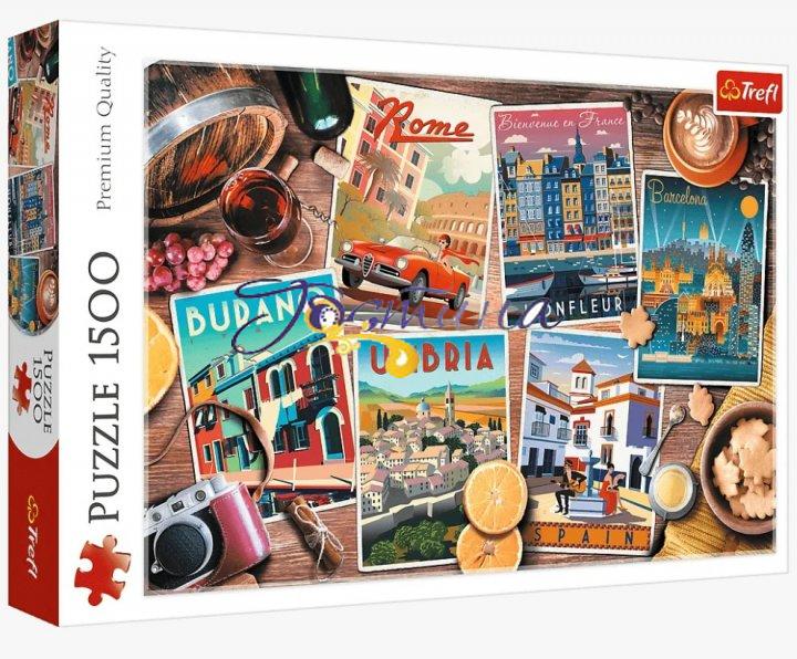 Пазли « Мандрівка Європою » на 1500 елементів представляють листівки з різних міст Європи. Пазл представляє вибрані моменти з епізодів. Після складання вийде картина розміром 85х58 см.