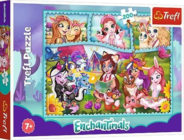 Пазли на 200 елементів із зображенням зачарованих дівчаток Енчантімалс, які разом із своїми друзями - маленькими звірятками захищають магічний ліс Евервайльд від злих сил. У складеному вигляді розмір картинки становить 48х34 див.