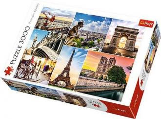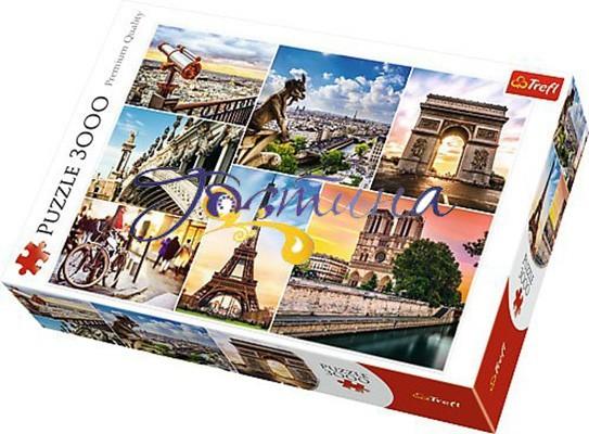 Пазли на 3000 елементів із зображенням у вигляді колажу чудових фотографій найвизначніших та найпопулярніших місць Парижу - Собору Паризької Богоматері, Ейфелевої вежі, Тріумфальної арки та інших. У складеному вигляді розмір картинки становить 116х85 див.