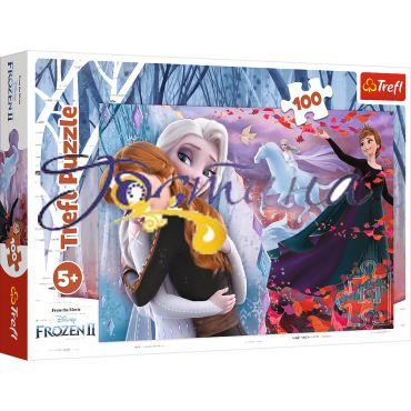 Пазли на 100 елементів із зображенням головних персонажів популярного анімаційного фільму Уолта Діснея "Крижане серце-2". У складеному вигляді розмір картинки становить 41х28 см.