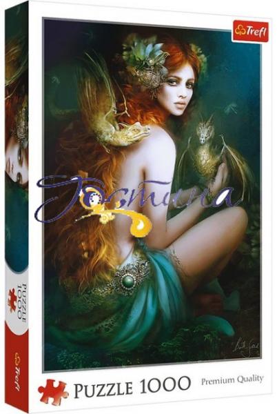 Пазли на 1000 елементів із зображенням картини сучасного німецького ілюстратора та концепт-художника Бенте Шлік "Приятелька драконів". У складеному вигляді розмір картинки становить 68х48 див.