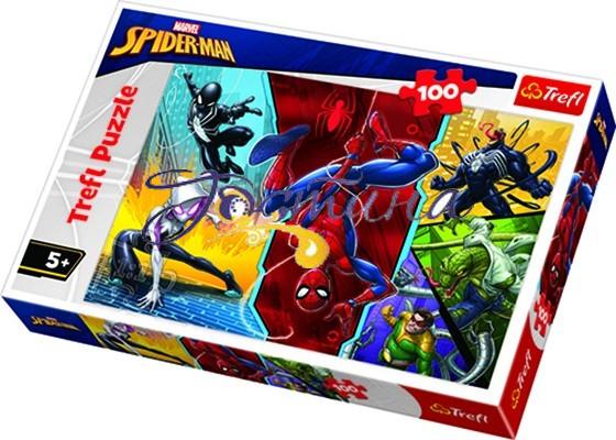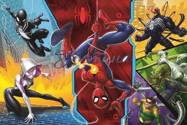 Пазли на 100 елементів із зображенням у вигляді колажу культового героя Спайдермена та його суперників . У складеному вигляді розмір картинки становить 41х28 див.