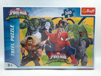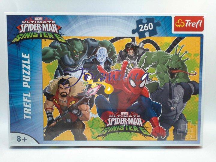 Пазли на 260 елементів із зображенням культового героя Спайдермена та його суперників. У складеному вигляді розмір картинки становить 60х40 див. Високу якість, насиченість кольорів та безпеку при укладанні пазлів забезпечує спеціальний глазурований (каландрований) картон, який відбиває світло та покрить екологічними фарбами.