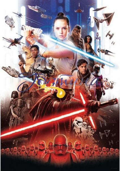Пазли на 1000 елементів із зображенням персонажів нового IX - го епізоду відомої кіноепопеї "Зоряні війни". У складеному вигляді розмір картинки становить 68х48 див.