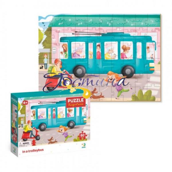 "Хто це їде настільки величезний, з двома металевими рогами? Та це ж тролейбус! Він летить вулицями, щоб усі городяни могли встигнути куди завгодно. Нова серія "Транспорт"" для дітей від 4-х років однозначно сподобається любителям техніки. машинки, поїзди, екскаватори - стільки цікавого!До того ж на пазлах багато деталей і персонажів, що так цікаво розглядати.Зберіть всі чотири пазли серії, щоб скласти їх в єдину картинку!Виготовлені з якісного картону, довговічні, приємні на дотик і зручні в використання. Кількість елементів: 60 Розмір пазла: 32х23 см