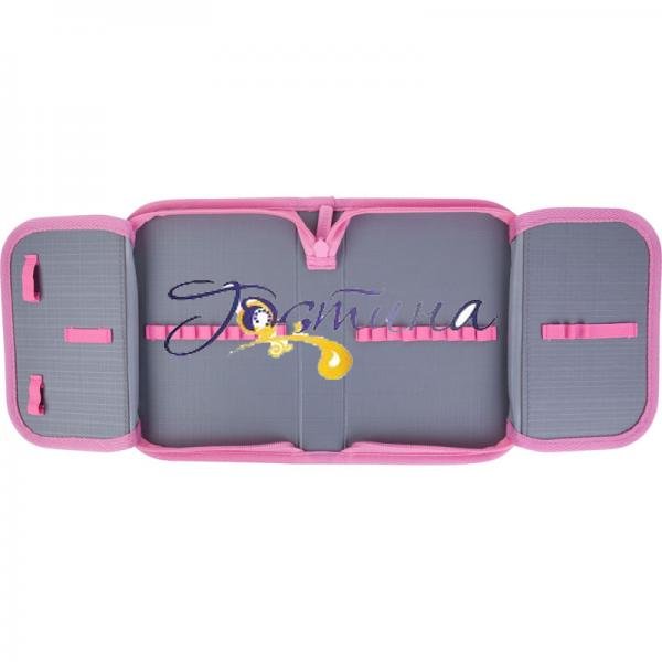 В пеналі легко підтримувати порядок. Ручки, олівці, фломастери, ножиці, лінійка, гумка і точилка: кожен предмет буде на своєму місці, акуратно закріплений еластичною гумкою.