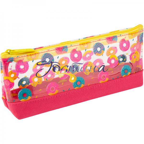 Пенал Kite K20-683-6 зручний і компактний. Яскравий, соковитий патерн пончиком піднімає настрій. Допоможе дитині бути організованіше і не відволікатися на пошук ручки, гумки і т. д. Може використовуватися в якості косметички, де дівчата зберігають свої скарби.