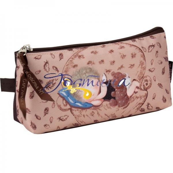 Пенал Kite виконаний з міцного поліестеру бежевого кольору із зображенням персонажів картин відомої художниці Євгенії Гапчинської.