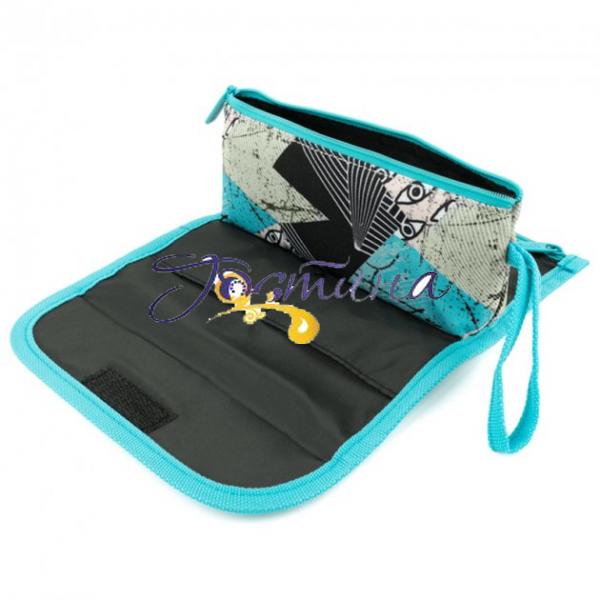 Модель поєднує в собі зручний формат, відмінну місткість та стильний дизайн. 1 основне відділення та бічна кишеня на блискавці розмістять весь базовий набір канцелярії чи косметики. На відвороті передбачений лаконічний органайзер з фіксуючими гумками, комірками та міні-кишеньками. Для простоти використання передбачена текстильна ручка-петля, за допомогою якої пенал зручно носити в руках або підвішувати для зберігання. Застібається практичною липучкою.