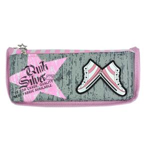Пенал шкільний 21х9х6 см, м'який на блискавці 2 відд,поліестер,рожево-сірий Мандарин
