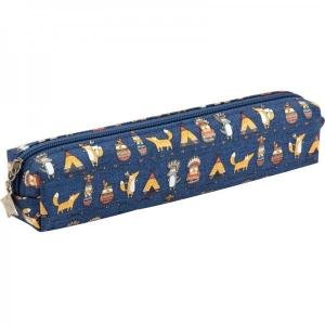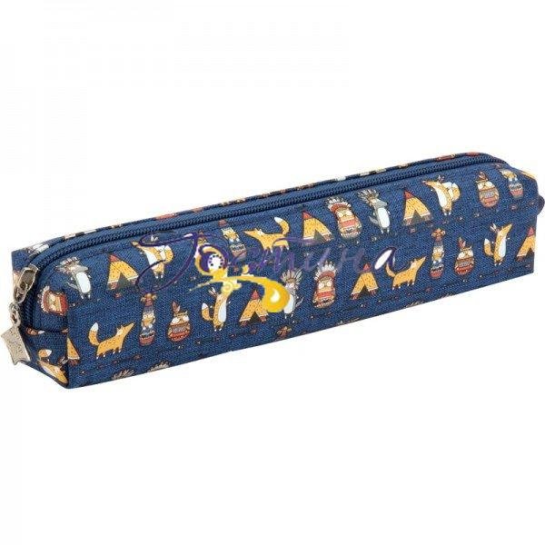 Пенал Kite виконаний з міцного брезенту синього кольору з яскравим принтом.