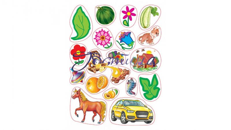 Тобто, з чим він найчастіше стикається і що оточує його в повсякденному житті. Це і улюблені іграшки, і соковиті, смачні фрукти, овочі, ягоди. А ще метелики, рибки, листочки на деревах, квіточки, зелений коник і веселі жучки - всі вони привітно посміхаються йому при зустрічі.