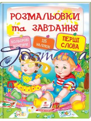 У «Перші слова. Розмальовки та завдання» малюкові пропонується розфарбувати те, що має відношення до його перших слів, що вимовляють вголос.