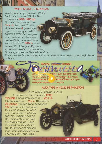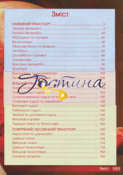Людина винайшла колесо у V тис. до н. е., а парус - у III тис. до н. е. Це поклало початок технічній гонці транспортних засобів на швидкість, вантажопідйомність, економічність. Популярна ілюстрована енциклопедія, що містить більше 400 кольорових фотоілюстрацій, познайомить читача із засобами пересування - наземними, водними, повітряними - з давнини до наших днів, а також розповість про концепти - "моделі з майбутнього". У книзі пропонується популярний технічний опис практично всіх існуючих транспортних засобів: від "вогненного воза XVIII ст. до суперкарів XXI ст., від давньоєгипетського папірусного човна до сучасного круїзного лайнера, від аеростата до "літаючого крила" на сонячних батареях. Цікаві, а часом навіть курйозні факти розширять уявлення читача про розвиток засобів пересування. Адресовано допитливим дітям і дорослим.