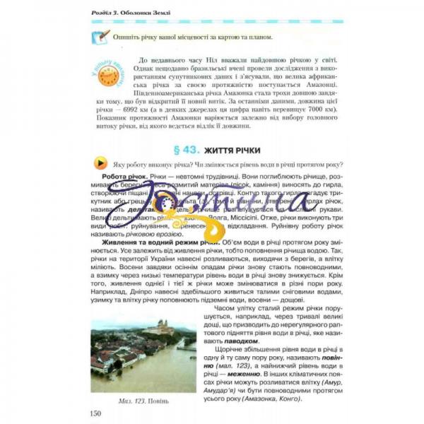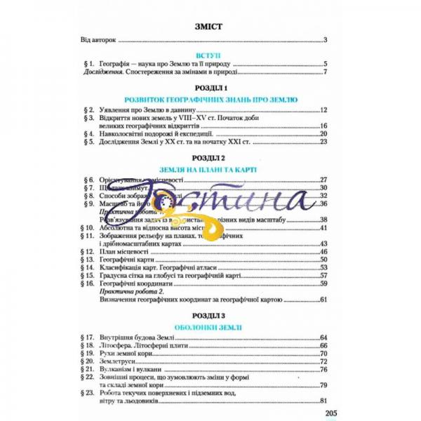 Підручник відповідає новому Державному стандарту базової та повної загальної середньої освіти.У виданні реалізовано ідеї формування географічної та екологічної культури, використано різні джерела географічної інформації для школярів. Значну увагу приділено розвитку наочно-образного й логічного мислення шестикласників, пізнавальному інтересу до об'єктів і процесів навколишнього світу, вивченню своєї місцевості та формуванню навичок в учнів щодо застосування конкретних географічних знань і вмінь на практиці.Підручник містить велику кількість малюнків, фотографій, картосхем, різноманітний методичний апарат.