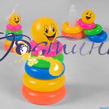 Іграшка являє собою 5-ти різнокольорових кілець, нанизаних на підставу, на вершині якого встановлено яскравий куля у вигляді смайлика ..
