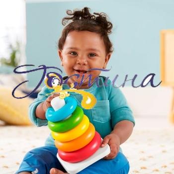 Пірамідка Fisher-Price (Фішер-прайс) з еко-матеріалів - класична іграшка для малюків. Вона має широку хитку основу та 5 різнокольорових кілець, які зручно хапати та складати маленькими ручонками.