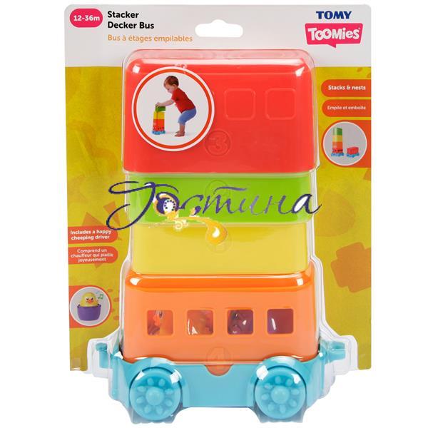 Пірамідка Toomies Автобус зроблена з якісного міцного пластику відповідно до стандартів безпеки дитячих іграшок. Висота буса 29 див.