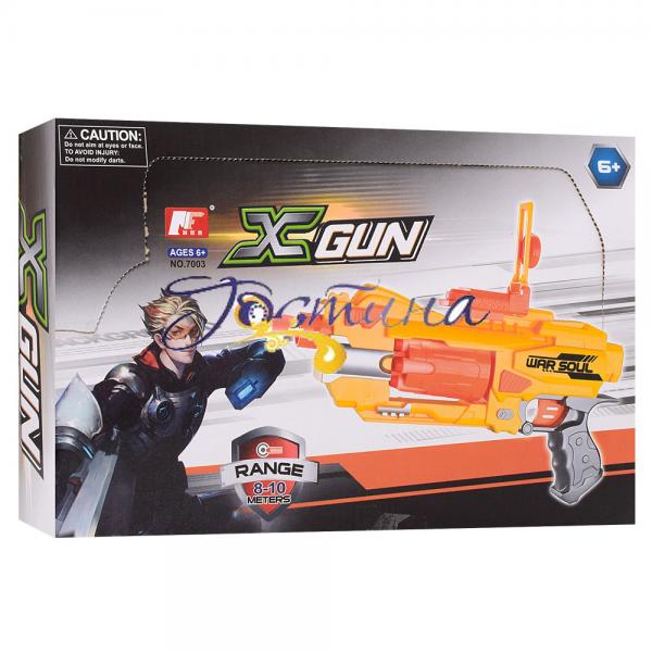 Пістолет 7003 бластер, 33см, кулі-присоски 20шт, на батарейках, в коробці. Розмір - 36-23-7,5см, Матеріал - пластмаса, Тип упаковки - Window Box.