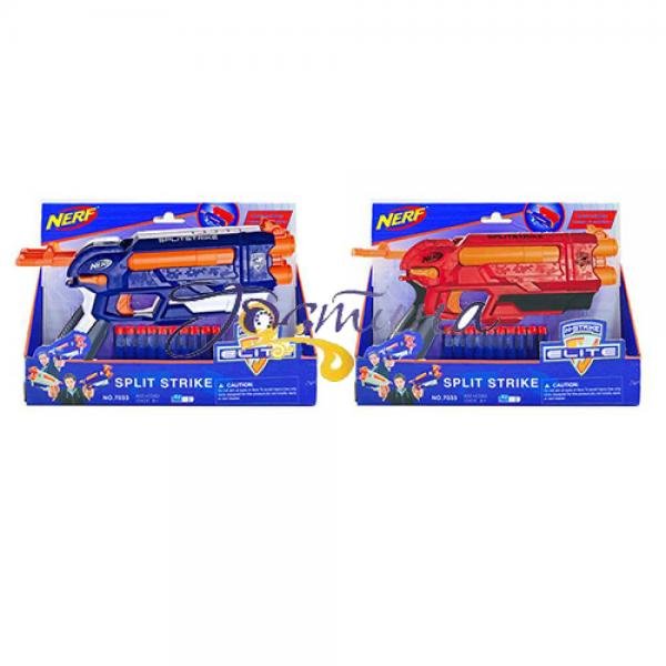 Пістолет 7033 32см, м'які кулі, 10шт, 2цв, в кор-ке. Розмір - 32,5-23-4,5см, Матеріал - пластмаса, Тип упаковки - Window Box.