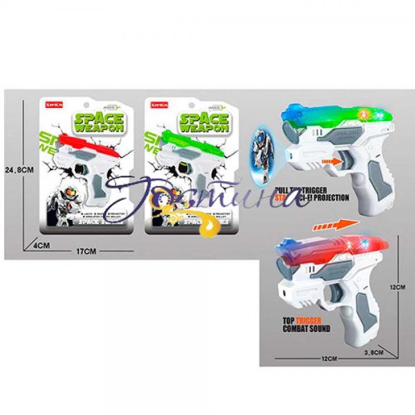 Пістолет KT118-28 бластер, 12см, звук, світло, проектор, 2цвета, на аркуші. Розмір - 17-25-3,5см, Матеріал - пластмаса